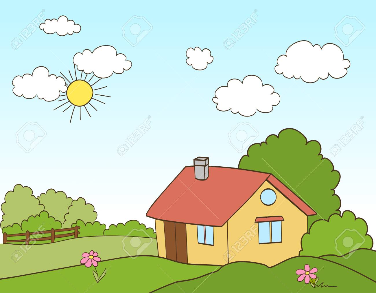 Source google image: https://previews.123rf.com/images/flowerstock/flowerstock1701/flowerstock170100023/70050010-maison-de-dessin-anim%C3%A9-dans-la-campagne-vecteur.jpg