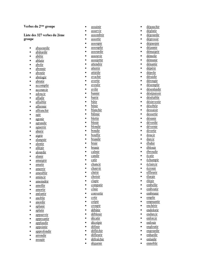 Télécharger Liste De Tous Les Verbes Du 2Ème Groupe